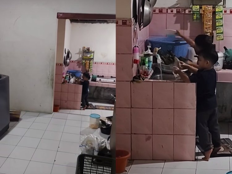 Tak disangka, jawaban jujur tersebut memicu inisiatif luar biasa dari buah hatinya. Tak lama berselang, terdengar suara gemericik air dan denting piring dari arah dapur.